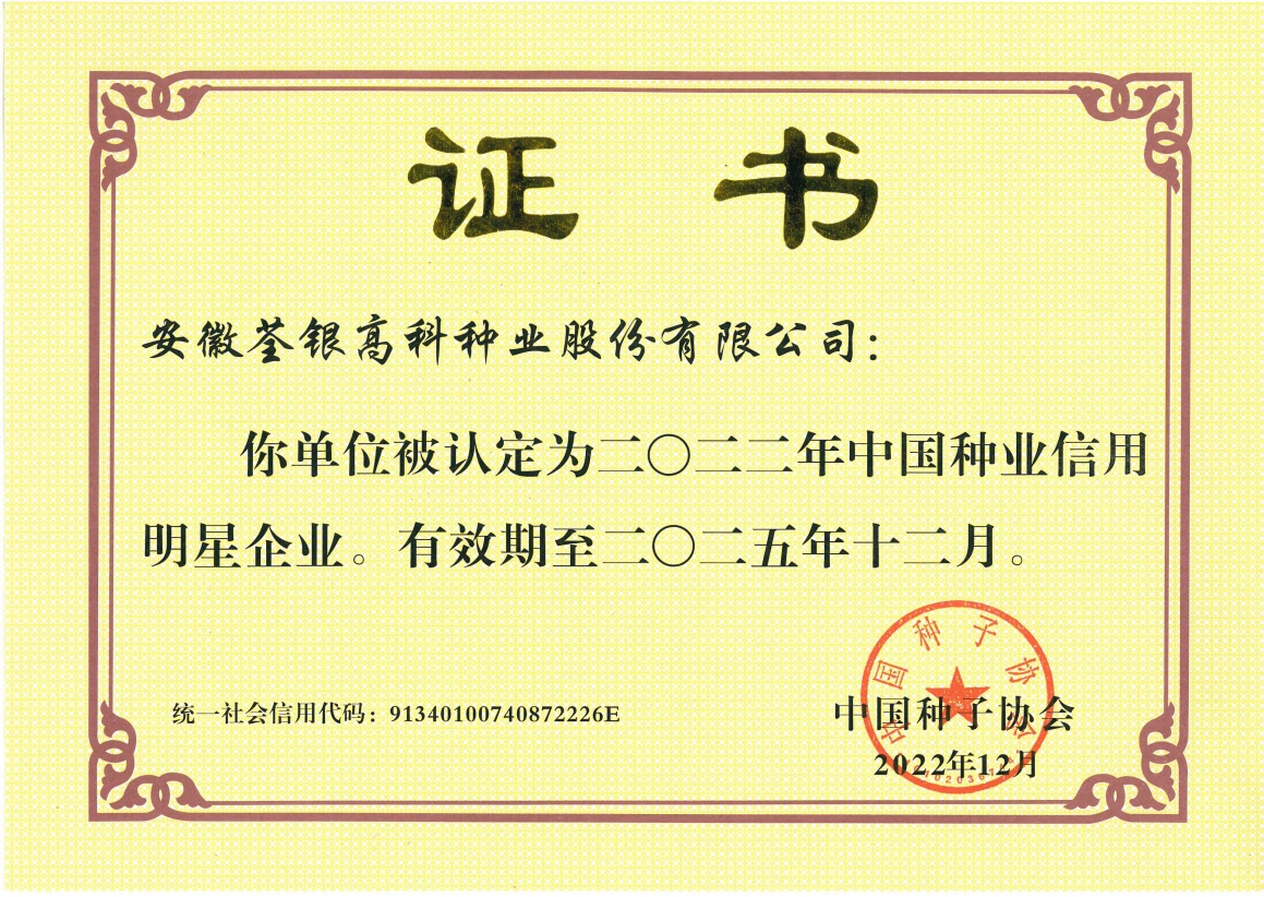 安徽荃銀高科種業(yè)股份有限公司是一家“以種業(yè)為核心、農(nóng)業(yè)服務(wù)為延伸、探索和創(chuàng)新農(nóng)業(yè)多元化發(fā)展”的現(xiàn)代高科技種業(yè)上市公司,證券代碼:300087。公司注冊資金9.47億元,系“中國種業(yè)領(lǐng)軍企業(yè)、農(nóng)業(yè)產(chǎn)業(yè)化國家重點龍頭企業(yè)、國家高新技術(shù)企業(yè)、農(nóng)業(yè)部首批農(nóng)作物種子育繁推一體化企業(yè)、中國種業(yè)信用明星企業(yè)"。在國內(nèi)控股子公司20多家,在國外設(shè)立分支機構(gòu)4家,良種銷售至全國20多個?。ㄊ?、區(qū)),出口覆蓋20多個國家與地區(qū),種業(yè)綜合實力、雜交水稻研發(fā)、推廣及海外業(yè)務(wù)規(guī)模均居全國種子企業(yè)前2位。